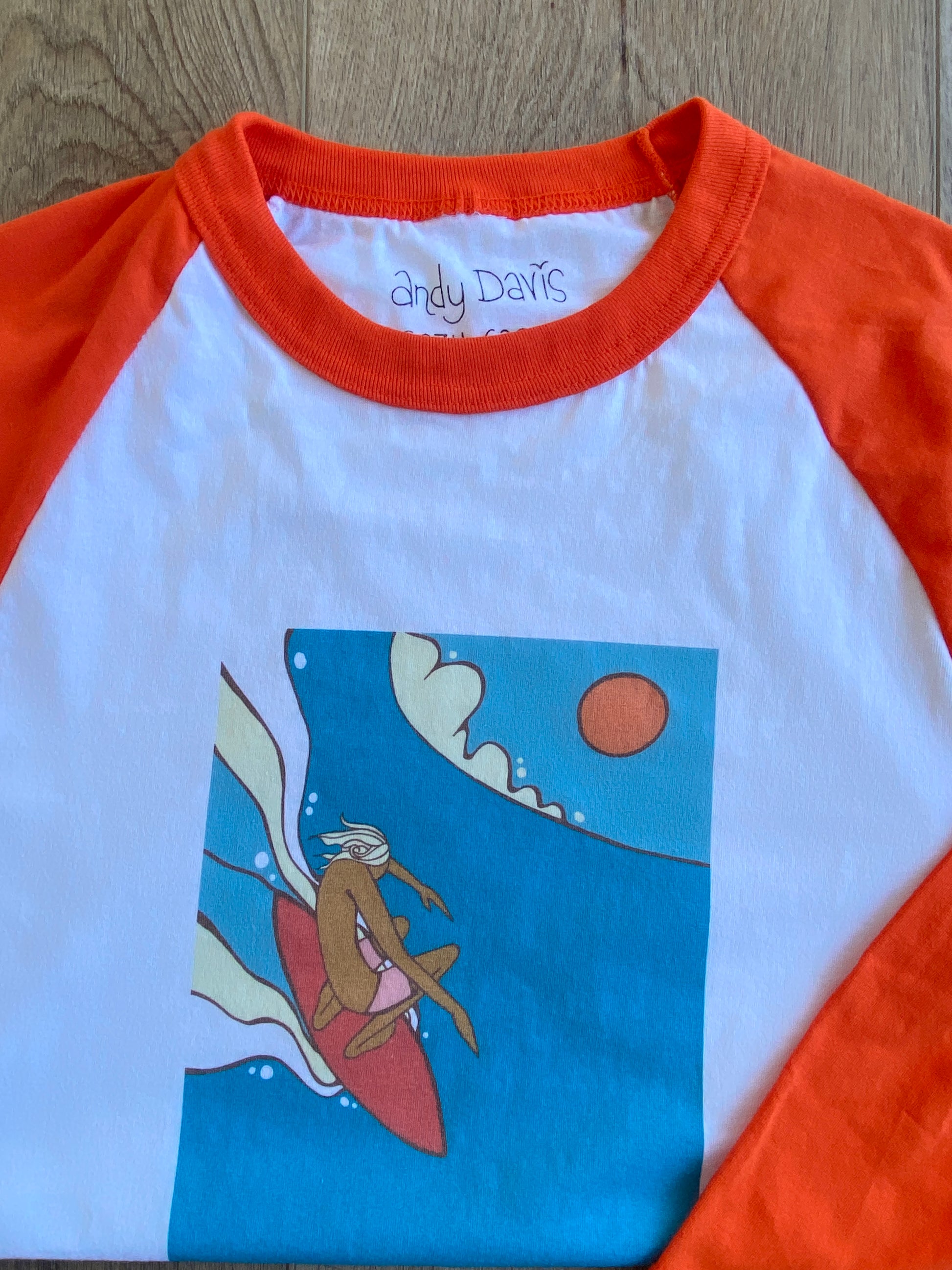 Andy's Goofy Dad print - featured on Orange raglan tee