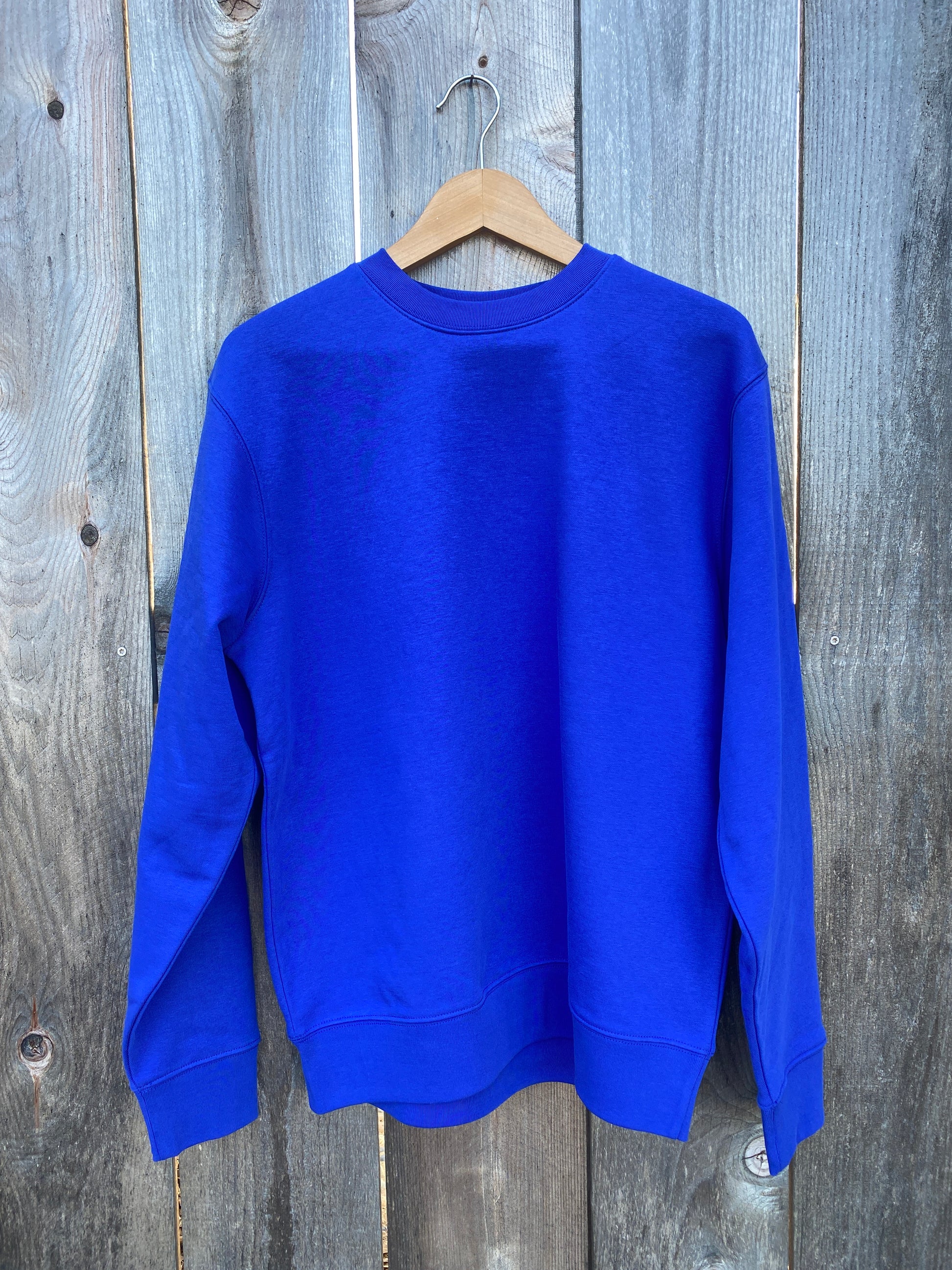 Andy's "Goofy Dad" artwork featured on back of of classic crew fleece - Royal